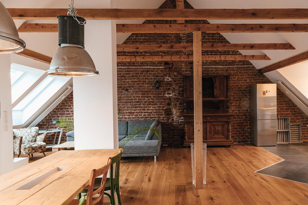 „Solche Böden bringen urbanes Flair in den Raum und sind gleichzeitig pflegeleicht und langlebig“, sagt Heil-Parkett in Bensheim.